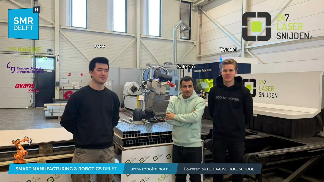 In this project, a team of Smart Manufacturing & Robotics students developed an automated system that picks finished laser-cut parts directly from a conveyor belt and palletizes them in a structured and consistent manner. The solution uses a Doosan collaborative robot combined with a guided pick station to handle parts immediately after they leave the cutting machine.