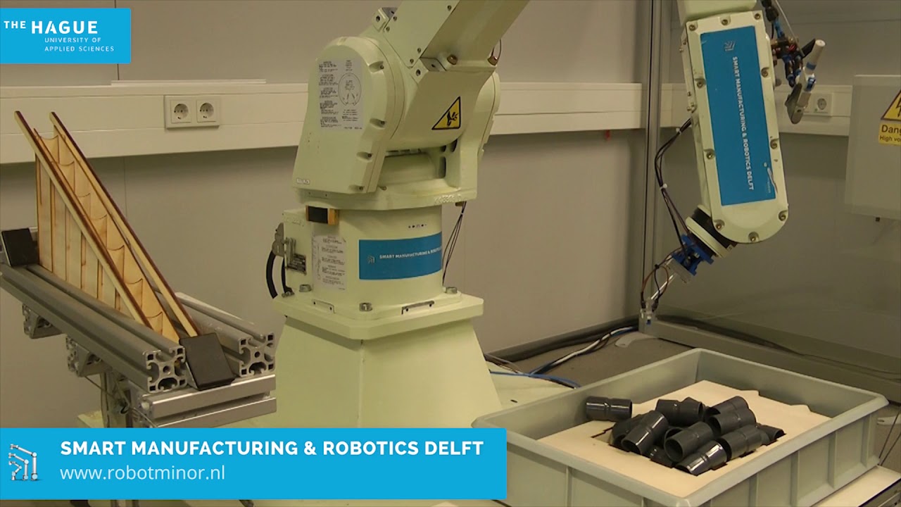 The found solution from our team is constructed from a combination of machine vision, a proper work area layout and a forgiving pick-up method.