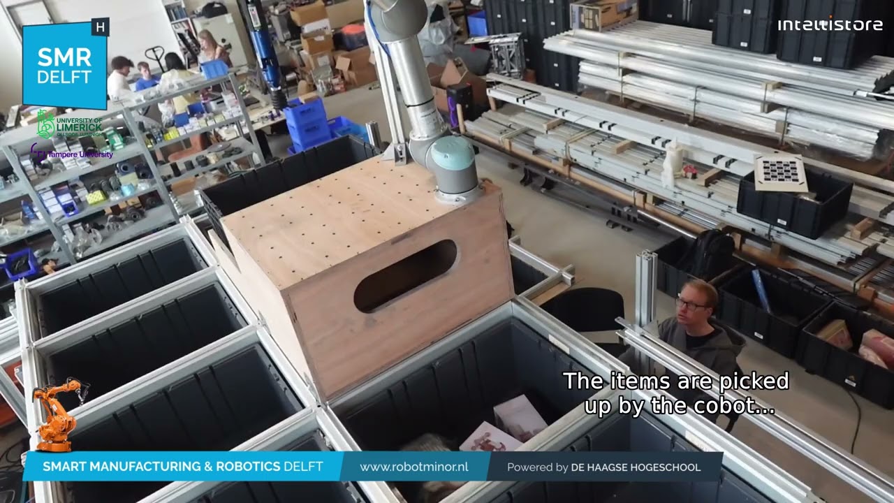 The picker robot will be enhanced with an integrated collaborative robotic arm and advanced vision system, enabling it to autonomously identify, retrieve, and handle requested items directly from storage crates. Collected items will be temporarily stored within an onboard compartment (“backpack”) as the robot fulfills the complete operator order. Once all requested items have been gathered, the robot will proceed to the picking station and transfer the consolidated order into a designated crate. This approach ensures that operators receive all requested items simultaneously, eliminating unnecessary crate movements and preventing the delivery of non-requested items.