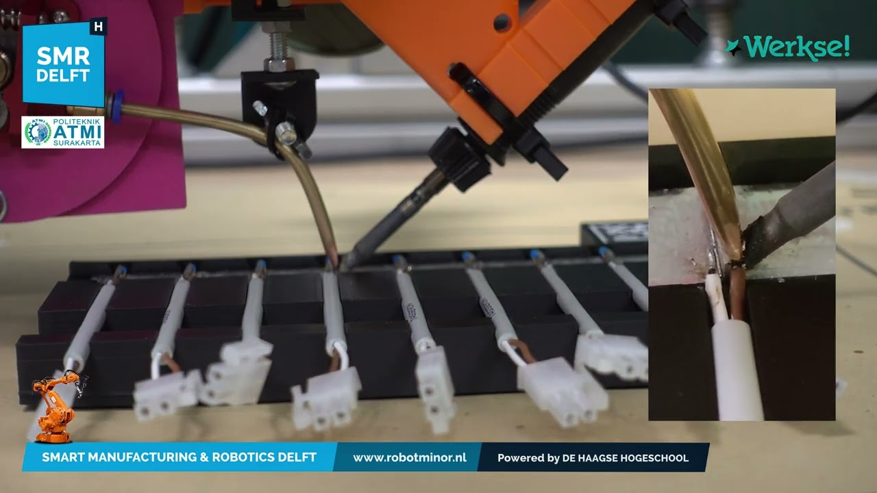 We designed our own end-of-arm tool for attaching the solder and the motor to extrude the tin. We use this approach because we found that the solder end-of-arm tool is very expensive, and it differs from our soldering job, where we need to deal with a tiny component.