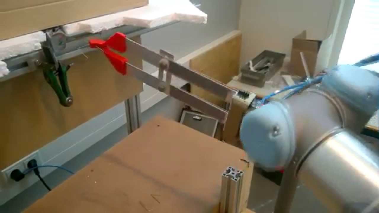A group of four students from The Hague University of Applied Sciences were asked to help the company with a packaging problem. In short, their task was to figure out a way to get a wire processed product from the wire processing machine, using a robot (Universal Robot, UR5), to a packaging station.